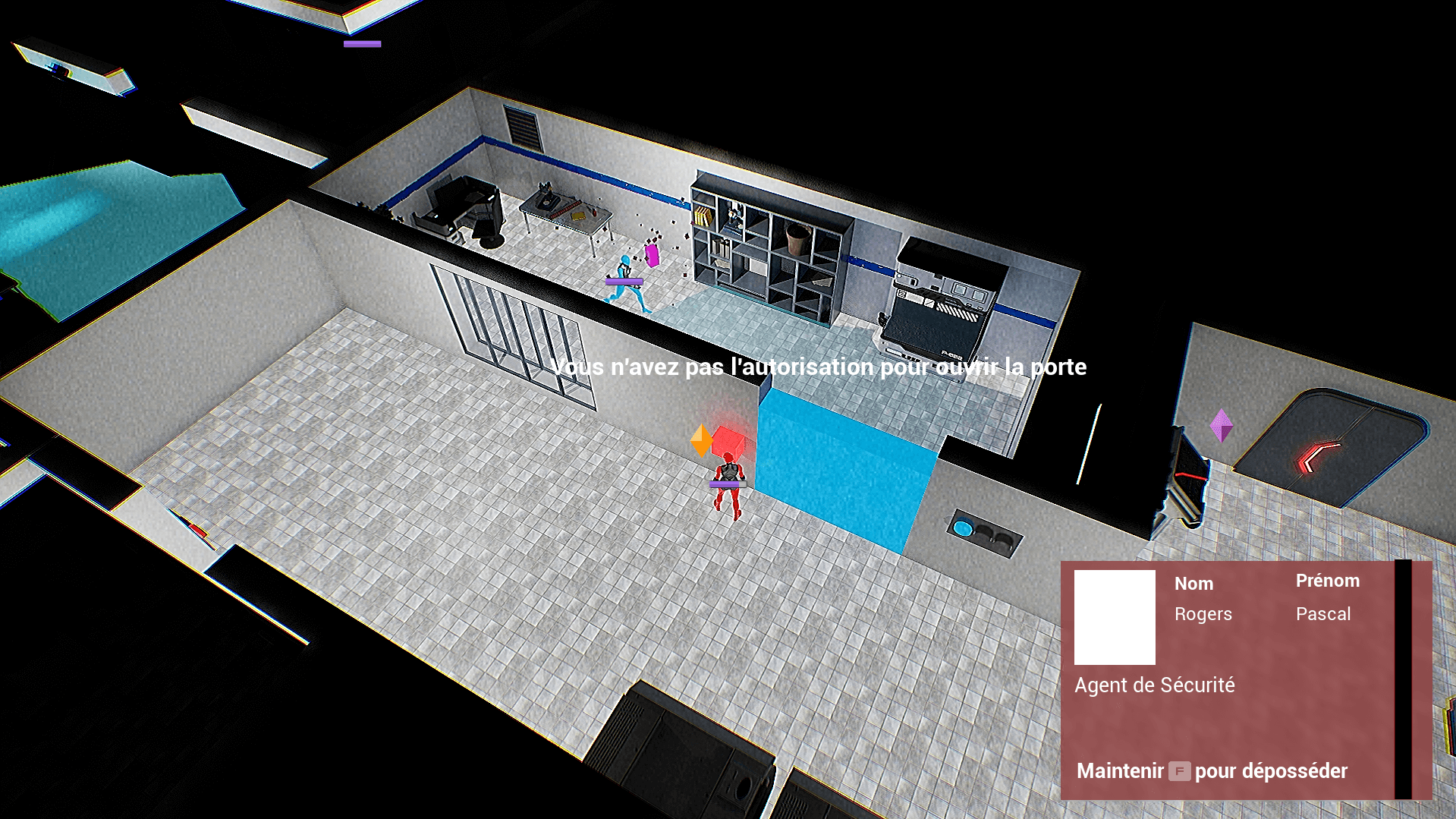 Ce système, que j’ai conçu et intégré, adapte l’affichage, les interactions et les retours visuels en fonction de l’état du joueur, renforçant l’immersion et la compréhension des rôles.